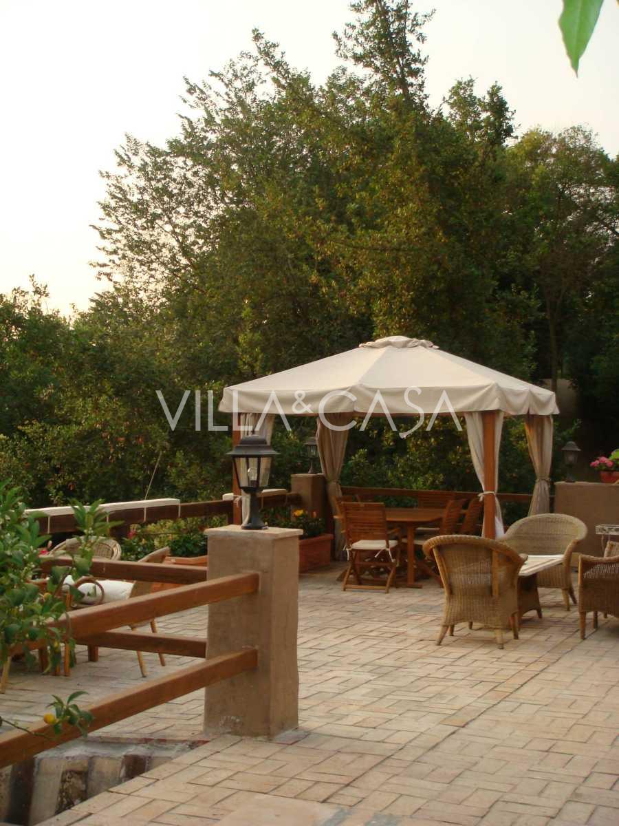 I en av de mest prestigefyllda och bevakade bostadsområdena i norra Rom, i området Due Ponti / Corso Francia, bredvid 18-håls golfklubben Parco di Roma, erbjuds en exceptionell historisk villa för uthyrning. Villan har en yta på cirka 700 m² och är fördelad på fem nivåer med terrasser och privata utomhusområden.