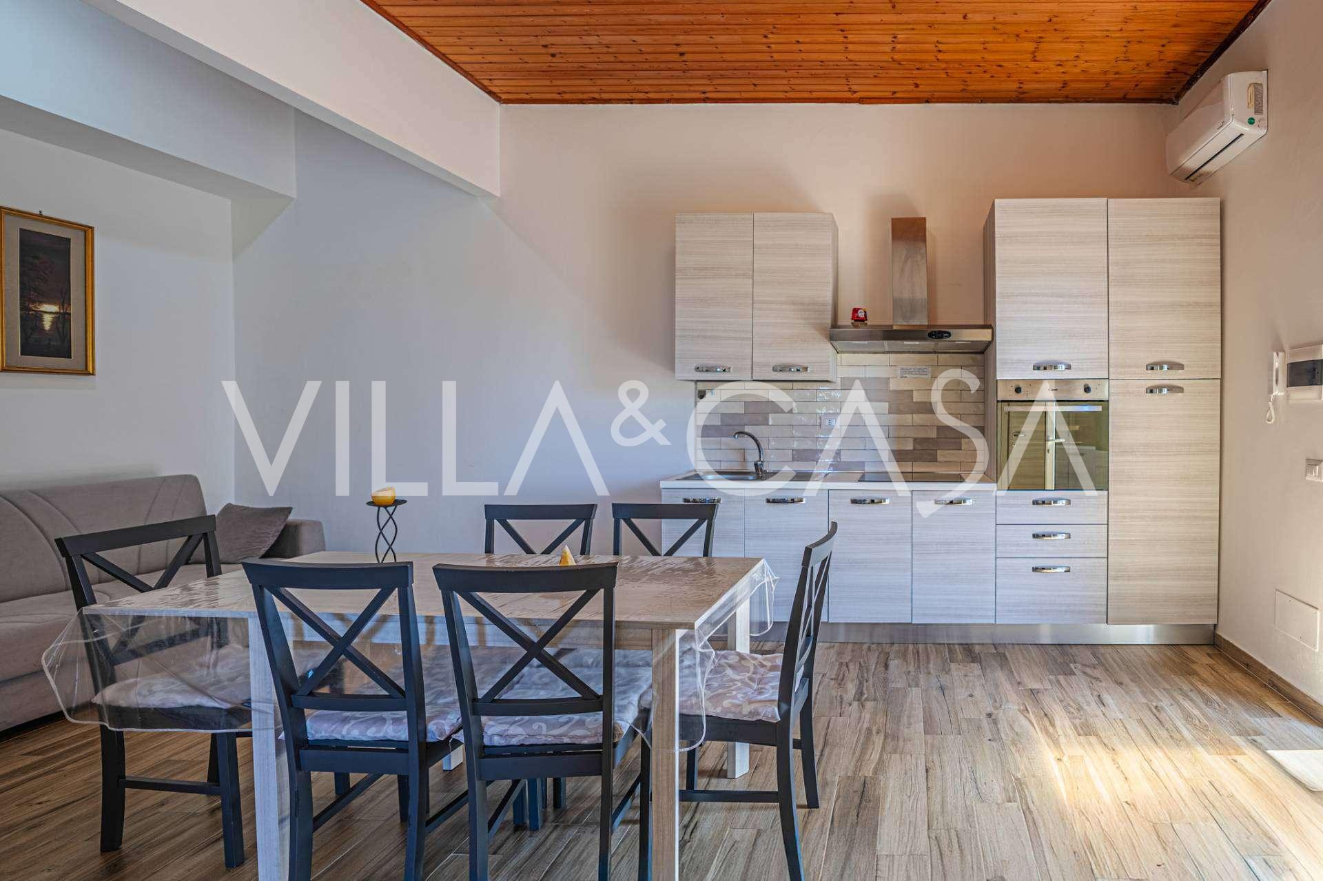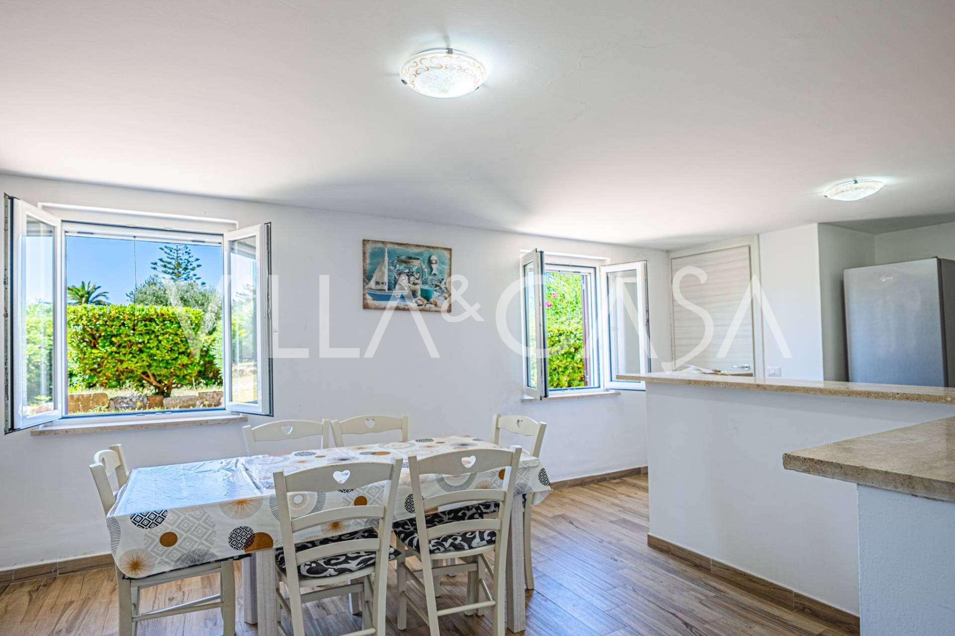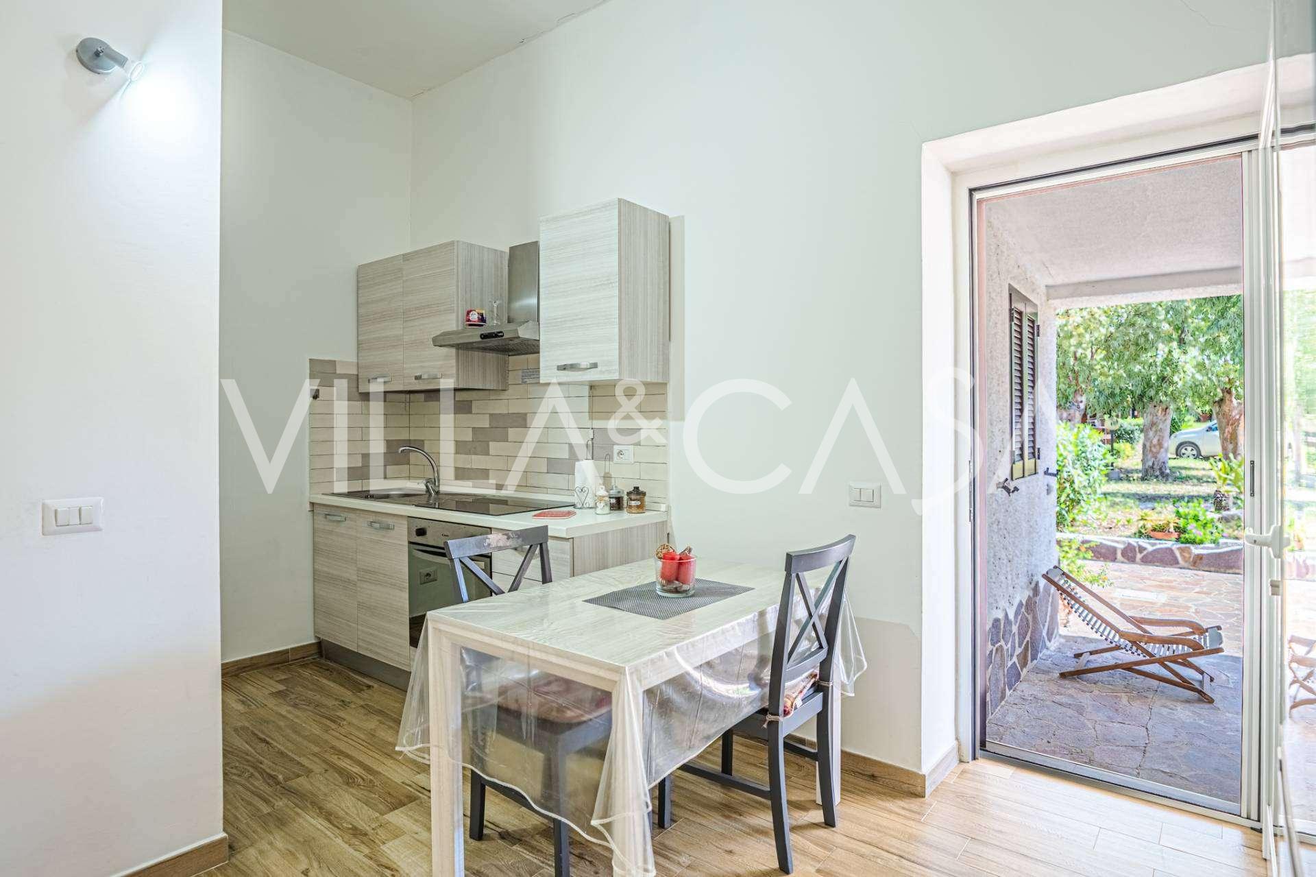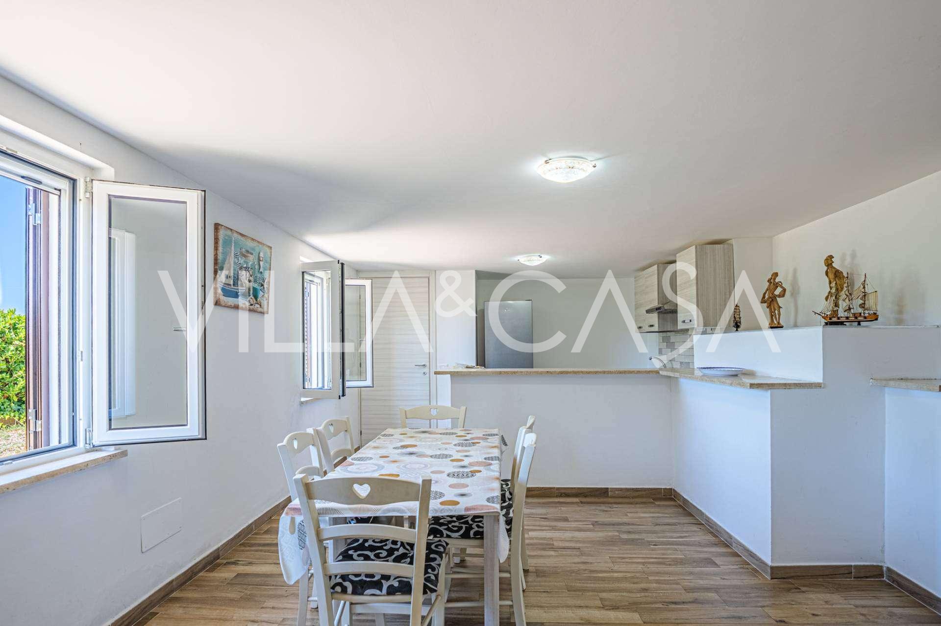 Bostaden kompletteras av ytterligare byggnader: en separat byggnad med badrum, pentry, vedugn, tvättstuga och förråd, samt en oberoende lägenhet på cirka 24 kvm med eget sovrum, badrum och pentry. Den pryds av en träpaviljong på cirka 100 kvm med tak, varifrån man har en pittoresk utsikt över havet. Lägenheten kännetecknas av avskildhet och utmärkt solexponering, har två infarter med automatiska grindar, är i perfekt skick, fullt möblerad och utrustad med luftkonditionering och solcellssystem.